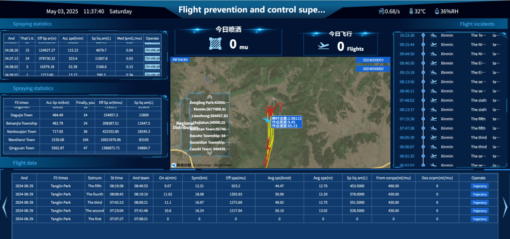 - The system supports real-time monitoring, spraying data recording, and analysis to ensure the accurate application of pesticides, fertilizers, and other materials.